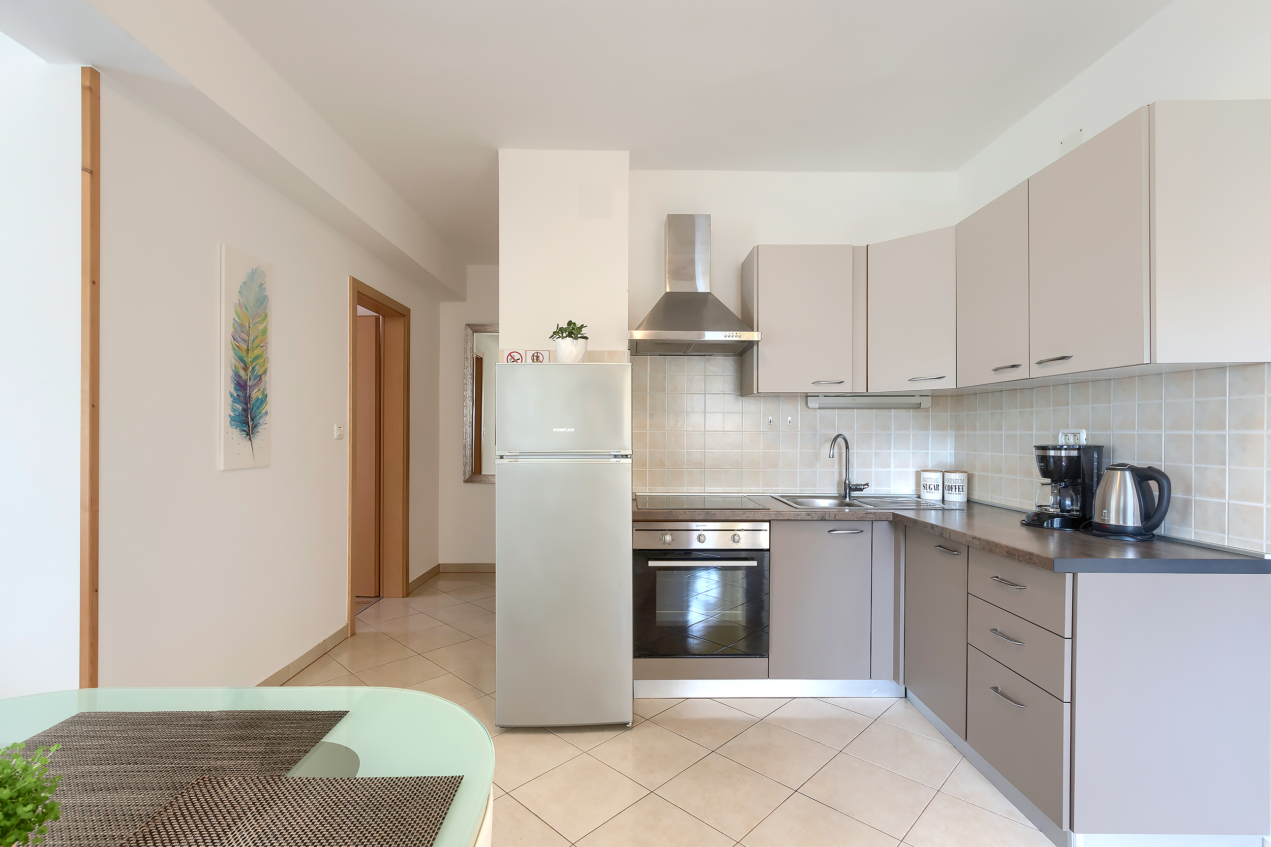 Appartamento per 2-3 persone (****), si trova al primo piano degli Appartamenti GILLY, e comprende una camera doppia, completamente arredata, bagno con doccia, soggiorno con cucina, un divano-letto singolo e un terrazzo.